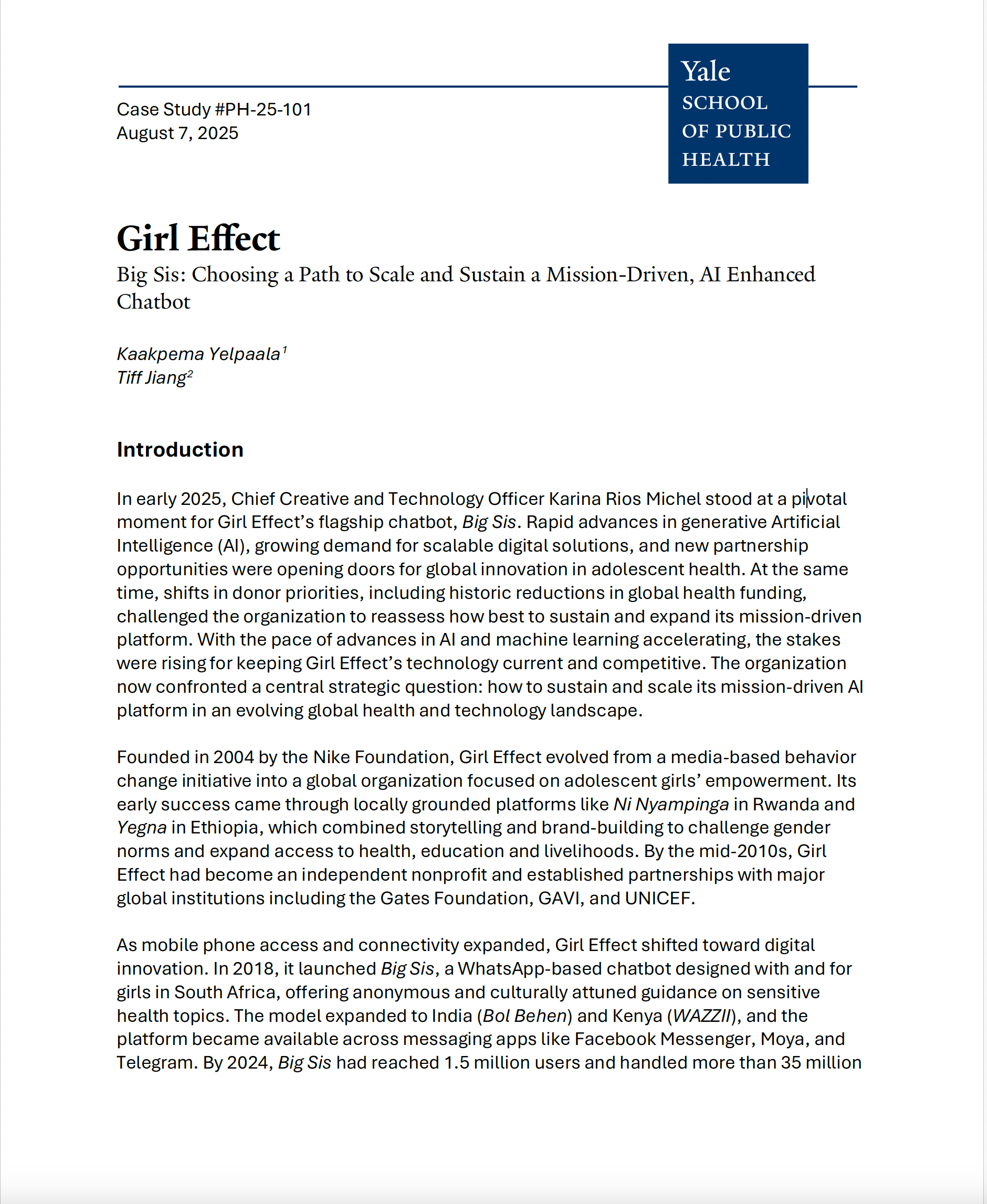 2025 Yale School of Public Health Case Study : Girl Effect, Big Sis: Choosing a Path to Scale and Sustain a Mission-Driven, AI Enhanced Chatbot